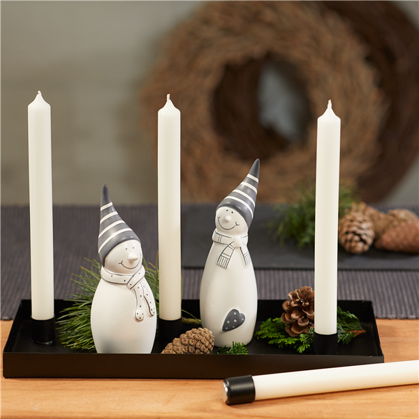 Puristisch im Design lässt sich das Tablett mit Magnet-Kerzenständer immer wieder neu arrangieren und bietet Ihnen somit viel Gestaltungsspielraum. Die Kerzen stehen kippsicher auf dem Tablett. Das schwarze Metall wirkt unaufdringlich festlich und mit fröhlichen Schneemännern aus Dolomit, Tannenzweigen und -zapfen dekoriert,