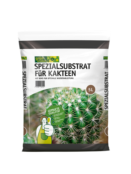 Grün erleben SPEZIALSUBSTRAT FüR KAKTEEN mit Bims für optimale Wasserableitung. Das Substrat ist für alle Arten von Kakteen, Bonsai und Sukkulenten geeignet.